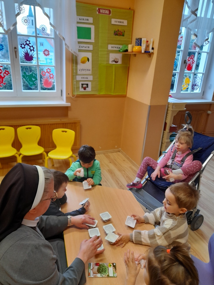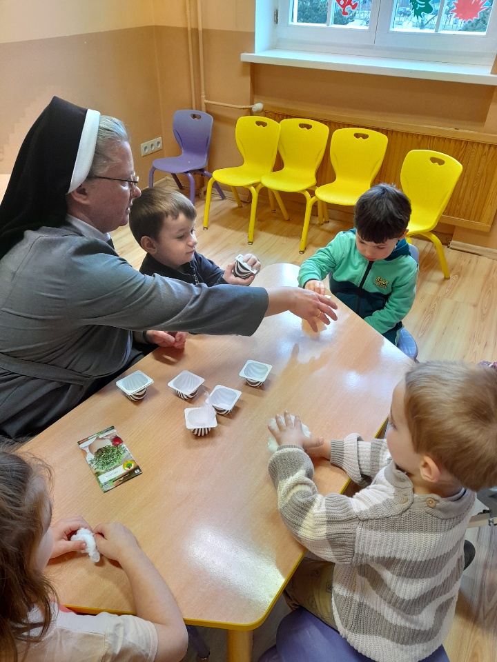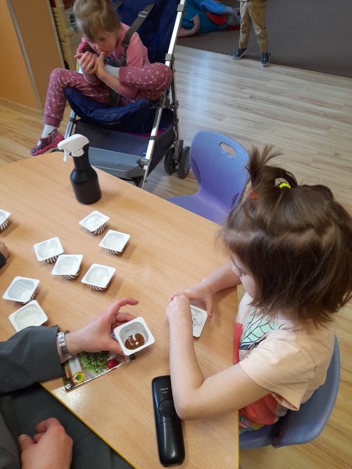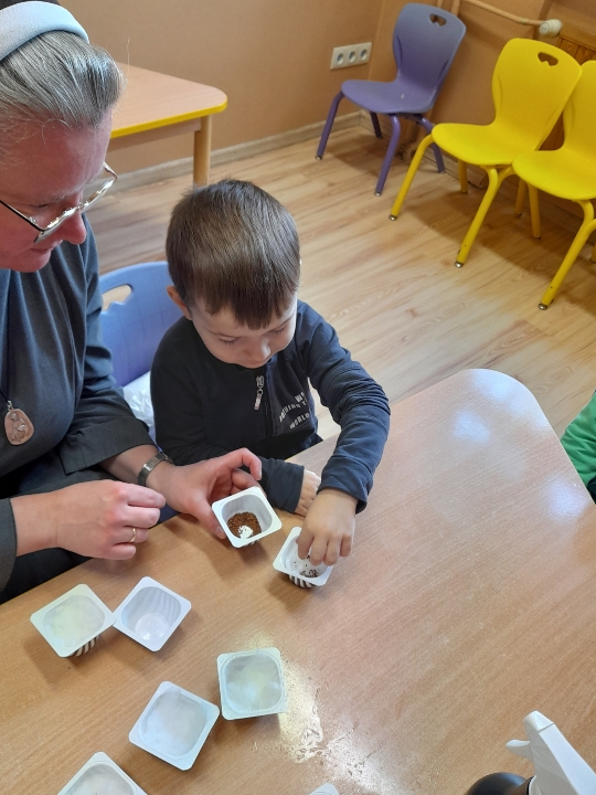 Przygotowując się do świąt Wielkanocnych wszystkie przedszkolaki siały rzeżuchę. Wszyscy tęsknimy za wiosenną zielenią.